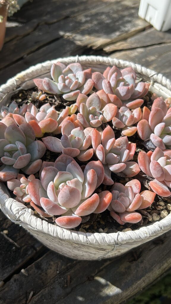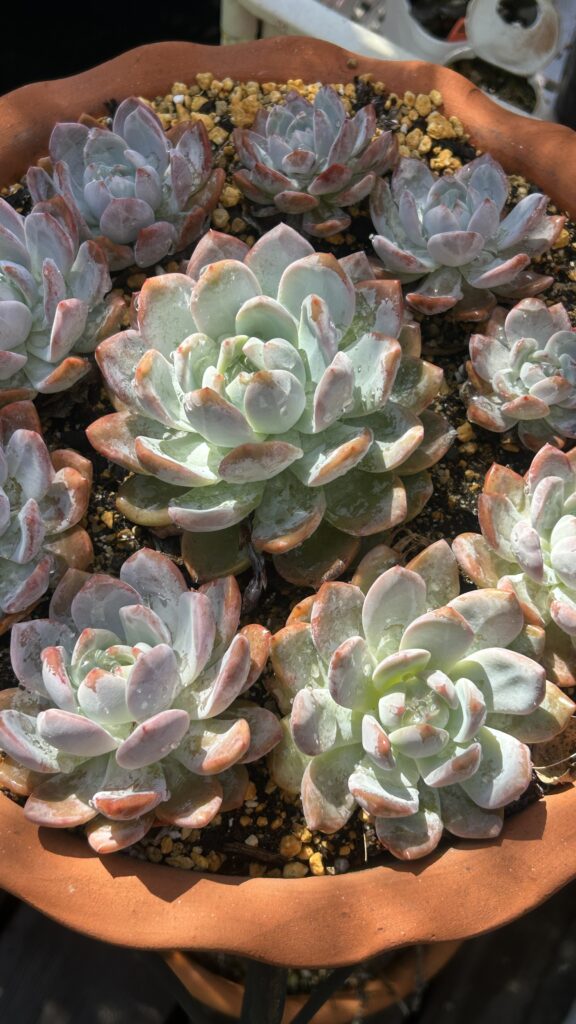 もともとは同じ鉢にモリモリになって植えられてた子たちを別々に植え替えたんですが、環境的には2枚目の子はかなり厳しい環境でした。真夏も関係なく雨ざらし日ざらしだったんで、、